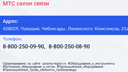 МТС, салон связи по адресу 428029, Чувашия, Чебоксары, Ленинского Комсомола, 21а в дальнейшем Организация, размещена в следующих категориях: