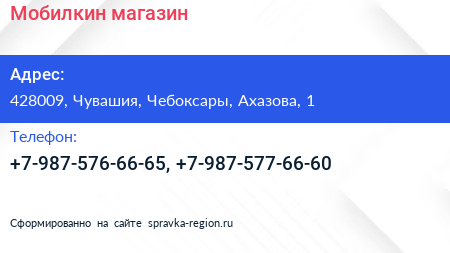 Мобилкин, магазин по адресу 428009, Чувашия, Чебоксары, Ахазова, 1 в дальнейшем Организация, размещена в следующих категориях: