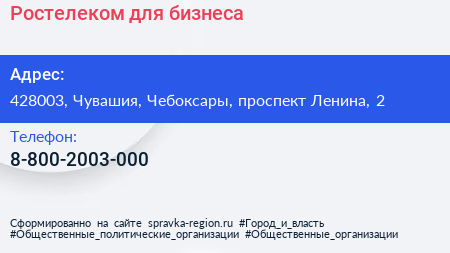 Ростелеком для бизнеса по адресу 428003, Чувашия, Чебоксары, проспект Ленина, 2 в дальнейшем Организация, размещена в следующих категориях: