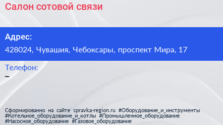 Салон сотовой связи по адресу 428024, Чувашия, Чебоксары, проспект Мира, 17 в дальнейшем Организация, размещена в следующих категориях: