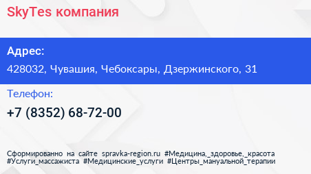 SkyTes, компания по адресу 428032, Чувашия, Чебоксары, Дзержинского, 31 в дальнейшем Организация, размещена в следующих категориях: