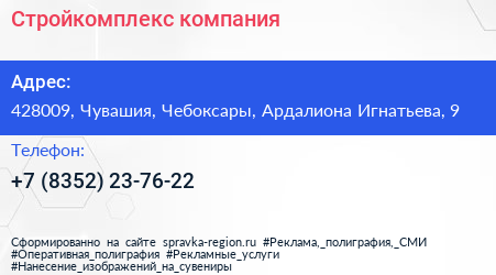 Стройкомплекс, компания по адресу 428009, Чувашия, Чебоксары, Ардалиона Игнатьева, 9 в дальнейшем Организация, размещена в следующих категориях: