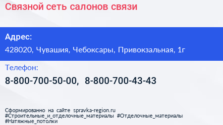Связной, сеть салонов связи по адресу 428020, Чувашия, Чебоксары, Привокзальная, 1г в дальнейшем Организация, размещена в следующих категориях: