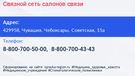 Связной, сеть салонов связи по адресу 429958, Чувашия, Чебоксары, Советская, 15а в дальнейшем Организация, размещена в следующих категориях:
