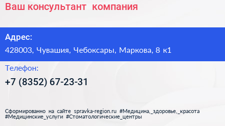 Ваш консультант+, компания по адресу 428003, Чувашия, Чебоксары, Маркова, 8 к1 в дальнейшем Организация, размещена в следующих категориях: