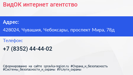 ВидОК, интернет-агентство по адресу 428024, Чувашия, Чебоксары, проспект Мира, 78д в дальнейшем Организация, размещена в следующих категориях: