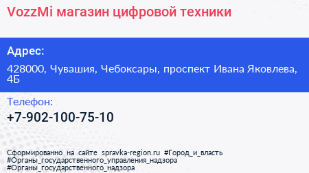VozzMi, магазин цифровой техники по адресу 428000, Чувашия, Чебоксары, проспект Ивана Яковлева, 4Б в дальнейшем Организация, размещена в следующих категориях: