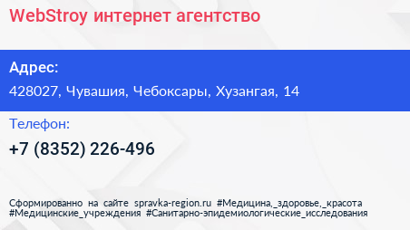 WebStroy, интернет-агентство по адресу 428027, Чувашия, Чебоксары, Хузангая, 14 в дальнейшем Организация, размещена в следующих категориях: