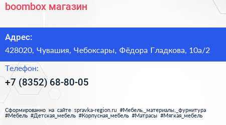 boombox, магазин по адресу 428020, Чувашия, Чебоксары, Фёдора Гладкова, 10а/2 в дальнейшем Организация, размещена в следующих категориях: