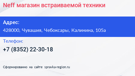 Neff, магазин встраиваемой техники по адресу 428000, Чувашия, Чебоксары, Калинина, 105а в дальнейшем Организация, размещена в следующих категориях: