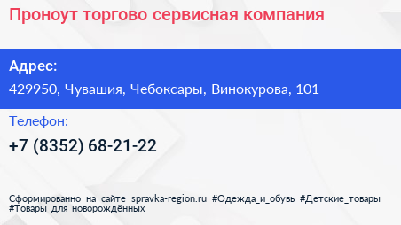Проноут, торгово-сервисная компания по адресу 429950, Чувашия, Чебоксары, Винокурова, 101 в дальнейшем Организация, размещена в следующих категориях: