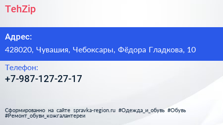 TehZip по адресу 428020, Чувашия, Чебоксары, Фёдора Гладкова, 10 в дальнейшем Организация, размещена в следующих категориях: