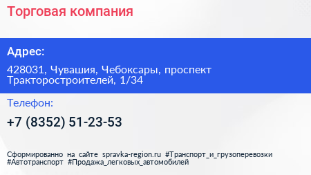 Торговая компания по адресу 428031, Чувашия, Чебоксары, проспект Тракторостроителей, 1/34 в дальнейшем Организация, размещена в следующих категориях: