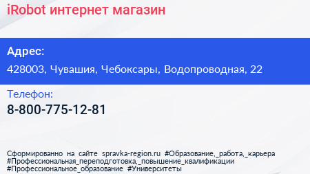 iRobot, интернет-магазин по адресу 428003, Чувашия, Чебоксары, Водопроводная, 22 в дальнейшем Организация, размещена в следующих категориях: