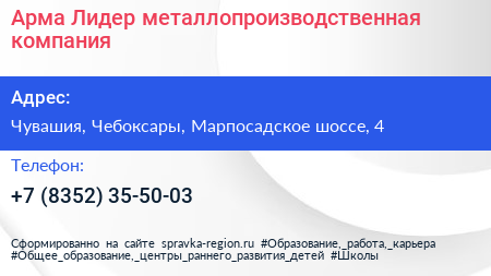 Арма-Лидер, металлопроизводственная компания по адресу Чувашия, Чебоксары, Марпосадское шоссе, 4 в дальнейшем Организация, размещена в следующих категориях: