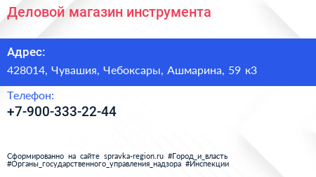 Деловой, магазин инструмента по адресу 428014, Чувашия, Чебоксары, Ашмарина, 59 к3 в дальнейшем Организация, размещена в следующих категориях: