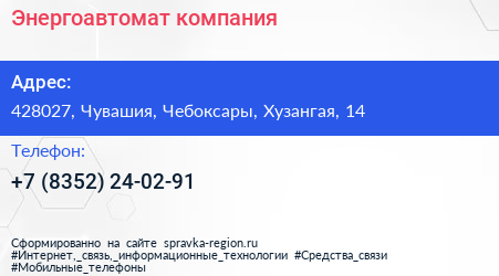 Энергоавтомат, компания по адресу 428027, Чувашия, Чебоксары, Хузангая, 14 в дальнейшем Организация, размещена в следующих категориях: