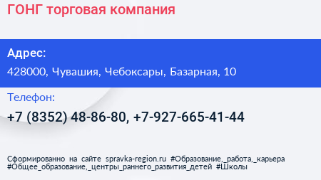 ГОНГ, торговая компания по адресу 428000, Чувашия, Чебоксары, Базарная, 10 в дальнейшем Организация, размещена в следующих категориях: