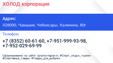 ХОЛОД, корпорация по адресу 428000, Чувашия, Чебоксары, Калинина, 80г в дальнейшем Организация, размещена в следующих категориях: