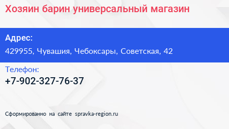 Хозяин-барин, универсальный магазин по адресу 429955, Чувашия, Чебоксары, Советская, 42 в дальнейшем Организация, размещена в следующих категориях: