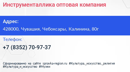 Инструменталлика, оптовая компания по адресу 428000, Чувашия, Чебоксары, Калинина, 80г в дальнейшем Организация, размещена в следующих категориях: