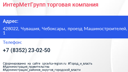 ИнтерМетГрупп, торговая компания по адресу 428022, Чувашия, Чебоксары, проезд Машиностроителей, 1 в дальнейшем Организация, размещена в следующих категориях: