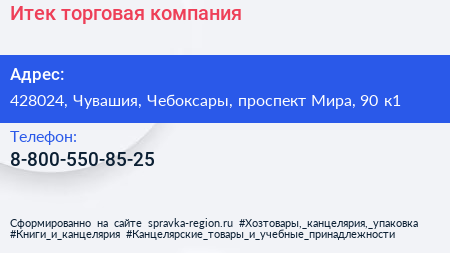 Итек, торговая компания по адресу 428024, Чувашия, Чебоксары, проспект Мира, 90 к1 в дальнейшем Организация, размещена в следующих категориях: