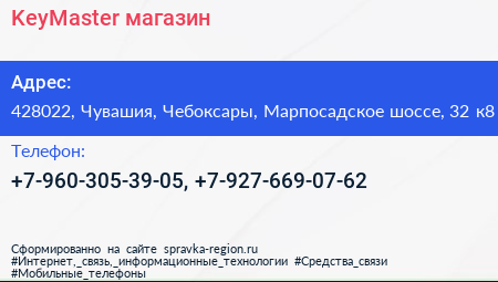 KeyMaster, магазин по адресу 428022, Чувашия, Чебоксары, Марпосадское шоссе, 32 к8 в дальнейшем Организация, размещена в следующих категориях: