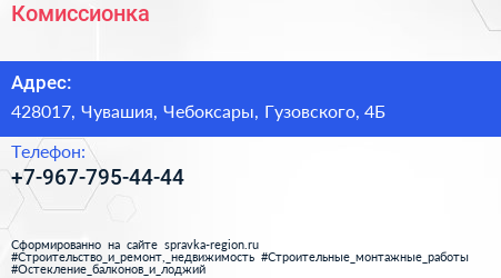 Комиссионка по адресу 428017, Чувашия, Чебоксары, Гузовского, 4Б в дальнейшем Организация, размещена в следующих категориях: