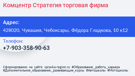 Комцентр Стратегия, торговая фирма по адресу 428020, Чувашия, Чебоксары, Фёдора Гладкова, 10 к12 в дальнейшем Организация, размещена в следующих категориях: