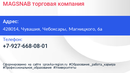 MAGSNAB, торговая компания по адресу 428014, Чувашия, Чебоксары, Магницкого, 6а в дальнейшем Организация, размещена в следующих категориях: