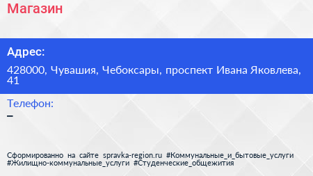 Магазин по адресу 428000, Чувашия, Чебоксары, проспект Ивана Яковлева, 41 в дальнейшем Организация, размещена в следующих категориях: