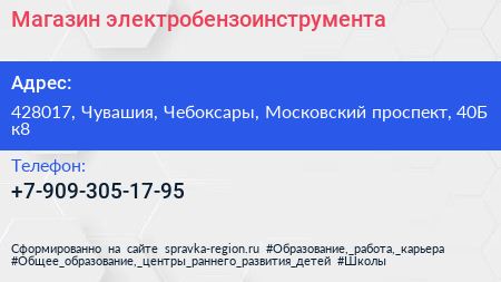 Магазин электробензоинструмента по адресу 428017, Чувашия, Чебоксары, Московский проспект, 40Б к8 в дальнейшем Организация, размещена в следующих категориях: