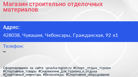 Магазин строительно-отделочных материалов по адресу 428038, Чувашия, Чебоксары, Гражданская, 92 к1 в дальнейшем Организация, размещена в следующих категориях: