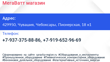 МегаВатт, магазин по адресу 429950, Чувашия, Чебоксары, Пионерская, 18 к1 в дальнейшем Организация, размещена в следующих категориях: