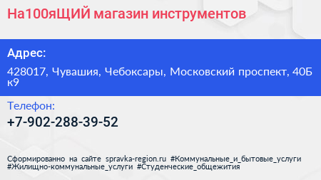 На100яЩИЙ, магазин инструментов по адресу 428017, Чувашия, Чебоксары, Московский проспект, 40Б к9 в дальнейшем Организация, размещена в следующих категориях: