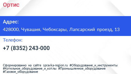 Ортис по адресу 428000, Чувашия, Чебоксары, Лапсарский проезд, 13 в дальнейшем Организация, размещена в следующих категориях:
