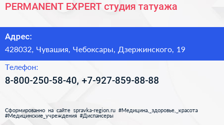 PERMANENT EXPERT, студия татуажа по адресу 428032, Чувашия, Чебоксары, Дзержинского, 19 в дальнейшем Организация, размещена в следующих категориях: