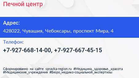 Печной центр по адресу 428022, Чувашия, Чебоксары, проспект Мира, 4 в дальнейшем Организация, размещена в следующих категориях: