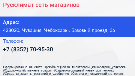 Русклимат, сеть магазинов по адресу 428020, Чувашия, Чебоксары, Базовый проезд, 3а в дальнейшем Организация, размещена в следующих категориях: