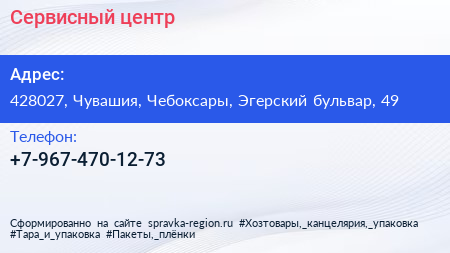 Сервисный центр по адресу 428027, Чувашия, Чебоксары, Эгерский бульвар, 49 в дальнейшем Организация, размещена в следующих категориях: