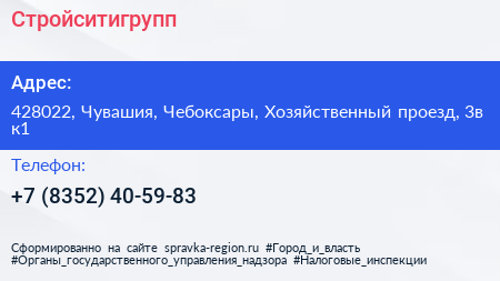 Стройситигрупп по адресу 428022, Чувашия, Чебоксары, Хозяйственный проезд, 3в к1 в дальнейшем Организация, размещена в следующих категориях: