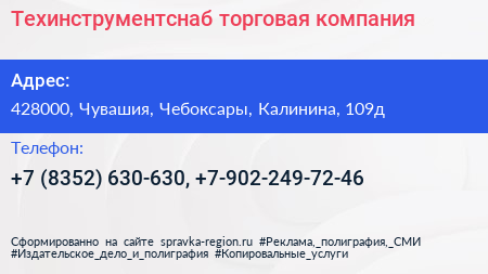 Техинструментснаб, торговая компания по адресу 428000, Чувашия, Чебоксары, Калинина, 109д в дальнейшем Организация, размещена в следующих категориях: