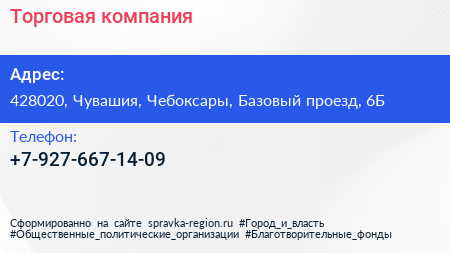 Торговая компания по адресу 428020, Чувашия, Чебоксары, Базовый проезд, 6Б в дальнейшем Организация, размещена в следующих категориях: