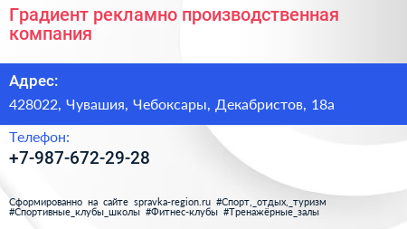 Градиент, рекламно-производственная компания по адресу 428022, Чувашия, Чебоксары, Декабристов, 18а в дальнейшем Организация, размещена в следующих категориях:
