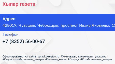 Хыпар, газета по адресу 428019, Чувашия, Чебоксары, проспект Ивана Яковлева, 13 в дальнейшем Организация, размещена в следующих категориях: