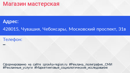 Магазин-мастерская по адресу 428015, Чувашия, Чебоксары, Московский проспект, 31в в дальнейшем Организация, размещена в следующих категориях: