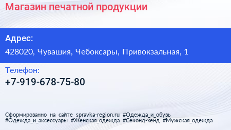 Магазин печатной продукции по адресу 428020, Чувашия, Чебоксары, Привокзальная, 1 в дальнейшем Организация, размещена в следующих категориях: