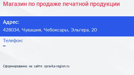 Магазин по продаже печатной продукции по адресу 428034, Чувашия, Чебоксары, Эльгера, 20 в дальнейшем Организация, размещена в следующих категориях: