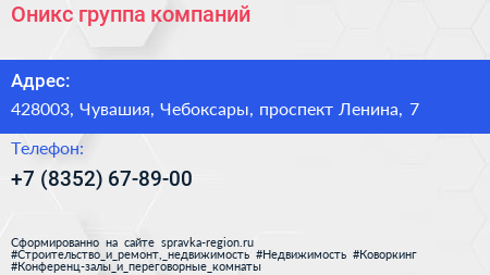 Оникс, группа компаний по адресу 428003, Чувашия, Чебоксары, проспект Ленина, 7 в дальнейшем Организация, размещена в следующих категориях: